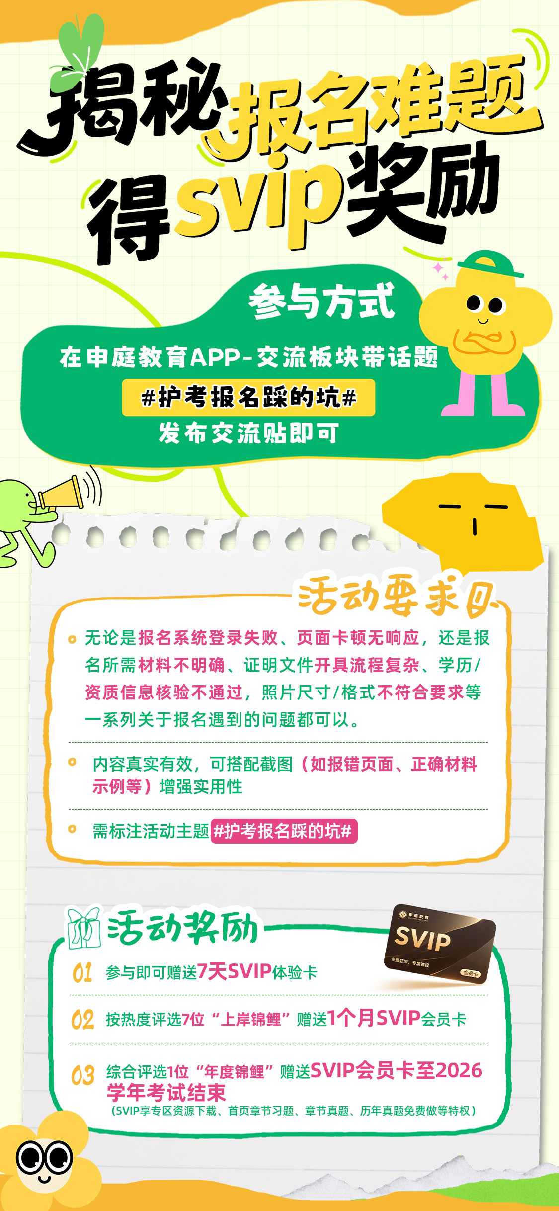 3.综合评选1位“年度锦鲤”赠送SVIP会员卡至2026学年考试结束(享专区资源下载、首页章节习题、章节真题、历年真题免费做等特权);